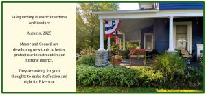 For over 25 years Riverton’s official public policy has already been to “preserve and enhance” our historic streetscapes ever since our Master Plan at the time our Historic District was placed on the National Register of Historic Places. But we didn’t have the right tools and no one researched how other towns were doing it successfully.
